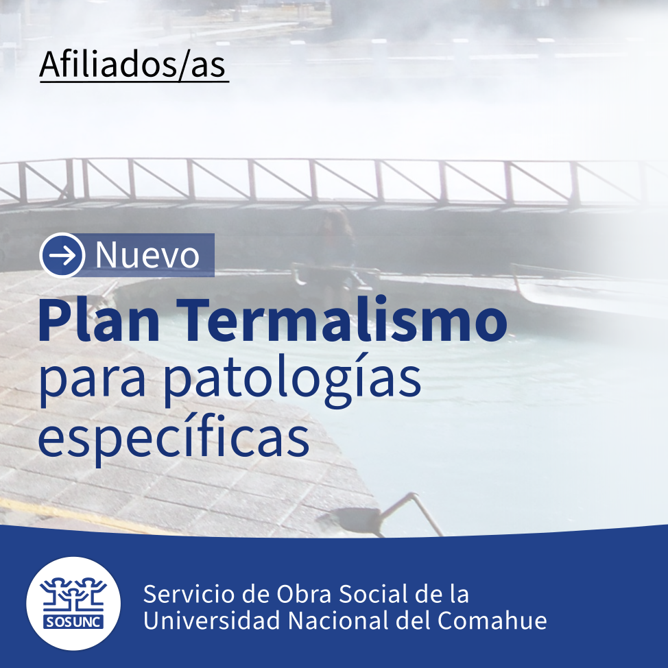 El 12 de enero de 2026, entra en vigencia el nuevo Plan Termalismo de SOSUNC, que otorga una cobertura del 70 por ciento en tratamientos termales, previa autorización de la Auditoría Médica.