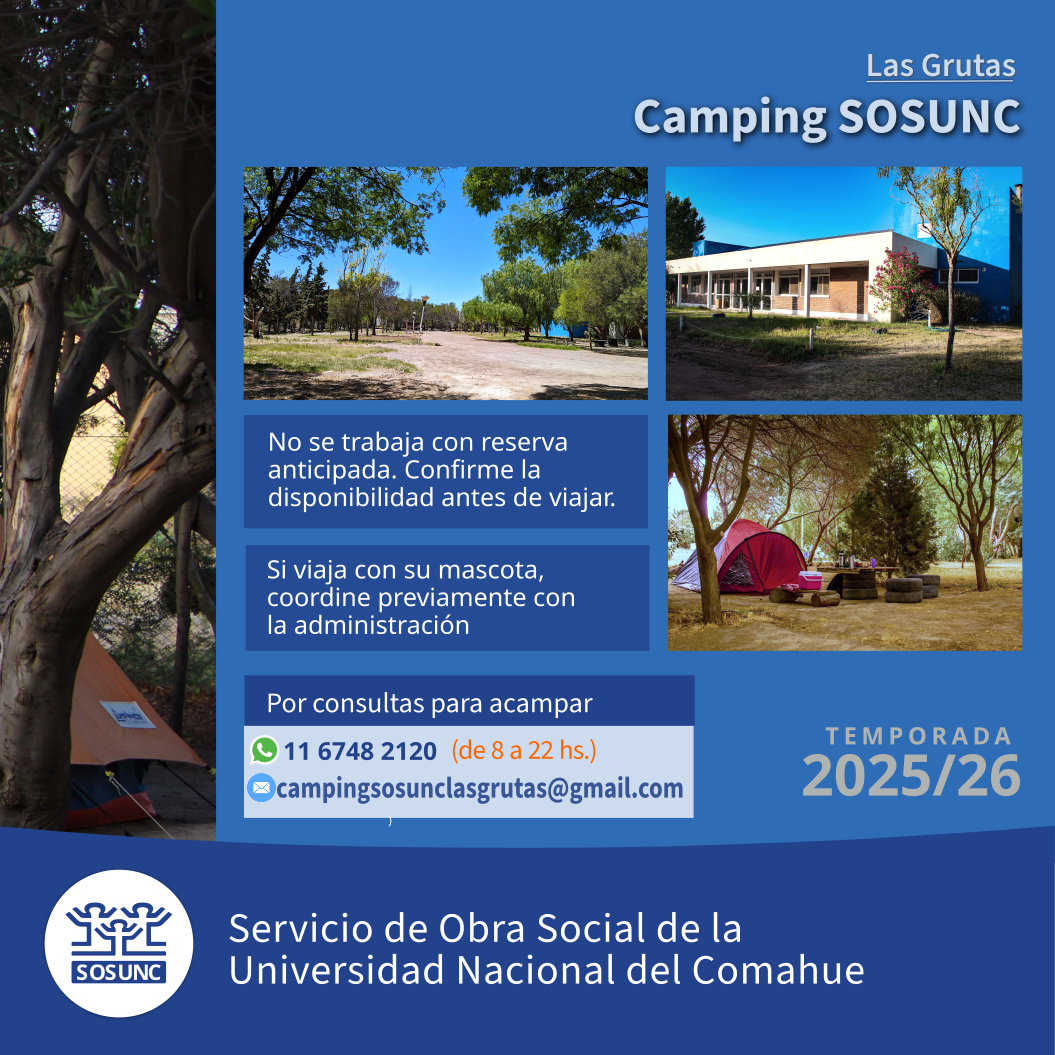 El Camping SOSUNC está en avenida Currú Leuvú 1170, a dos cuadras de la bajada La Rinconada. Nos encuentran en el mapa acá: VER MAPA