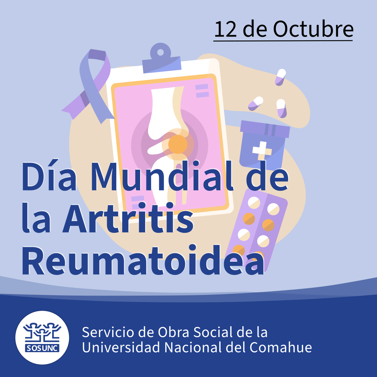 En 1996, la asociación internacional Arthritis Foundation estableció la conmemoración del Día Mundial de la Artritis cada 12 de octubre, para generar conciencia sobre esta enfermedad y dar a conocer su impacto entre quienes la padecen y su entorno.
