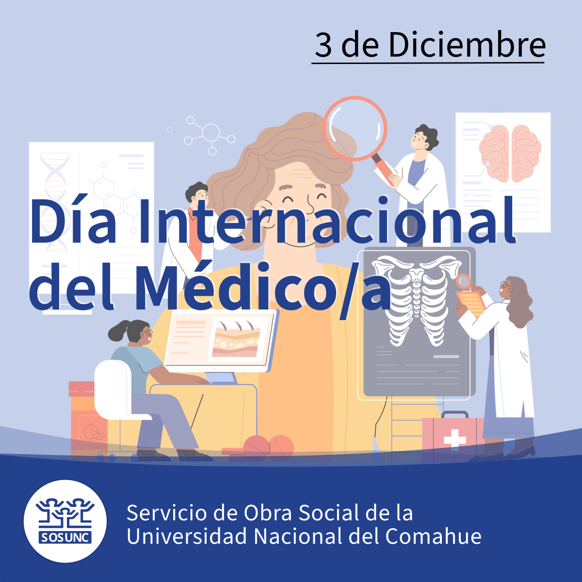 Felicitamos en su día a las médicas y médicos del equipo de profesionales de SOSUNC, a quienes trabajan junto a nuestra obra social como prestadores y a quienes ejercen la docencia en la Facultad De Ciencias Médicas de la UNCo.